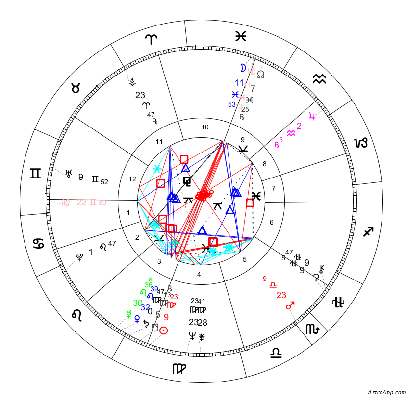 With Mars square Jupiter he was actually spoiled, used to getting his way—at least in the microcosm world he inhabited, where his female relatives cared for him. He was gender-privileged as well. He depended on—and ultimately hated—the women in his life. Like a petulant Raja, he demanded his due. Each man a potentate over the women who bore and protected him.